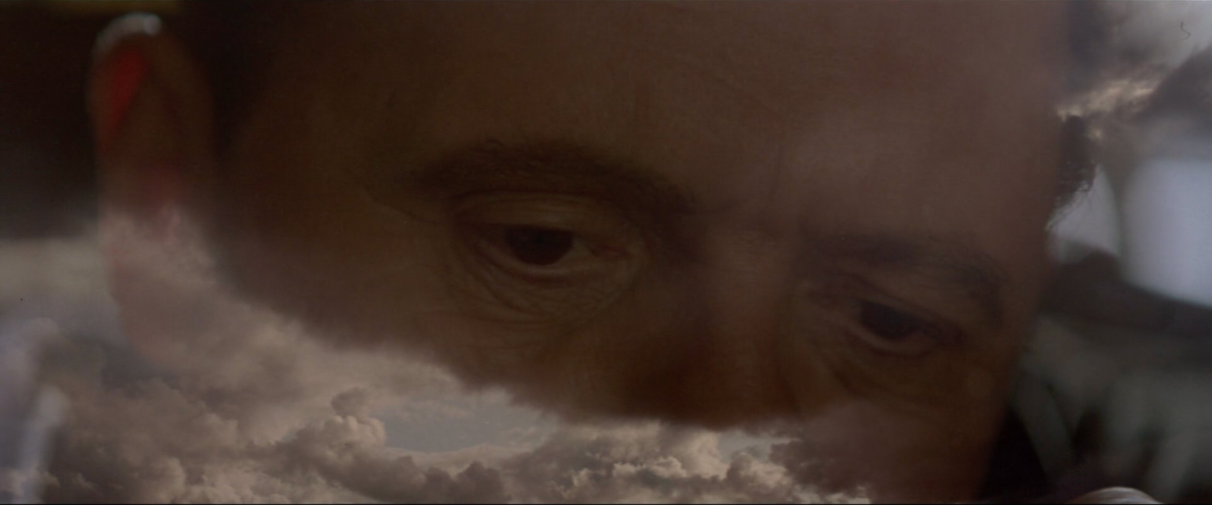 In this scene, this “rough beast,” a line announced by Helms as “beautifully ominous,” could just as well be Helms himself. Stone and Sam Waterston turn Helms into State Department Satan (which, perhaps so). This is done by compounding together caricatures of Richard Helms and the prior director of the CIA, James Angleton, into this sneering Ivy League WASP demon. Helms is everything Nixon is not. As Nixon and Helms stalk each other around the room, the camera tracks with them, and their close-ups shot on anamorphic lenses pull the background around them like a large spinning wheel. As Helms quotes Yeats, “Turning and turning in the widening gyre.” Helms’ office is full of orchids, he asks Nixon if he likes flowers. He replies, “No, they remind me of death. I had two brothers die. But let me tell you, there are worse things than death, there’s such a thing as evil.” And here we get this ridiculous gag shot over an L cut: as Helms smells one of his orchids, his eyes open and they’re totally black.